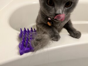 ブラシでは取りきれなくて、たまに毛玉を吐いていたのでそのうちやろうと思っていた。