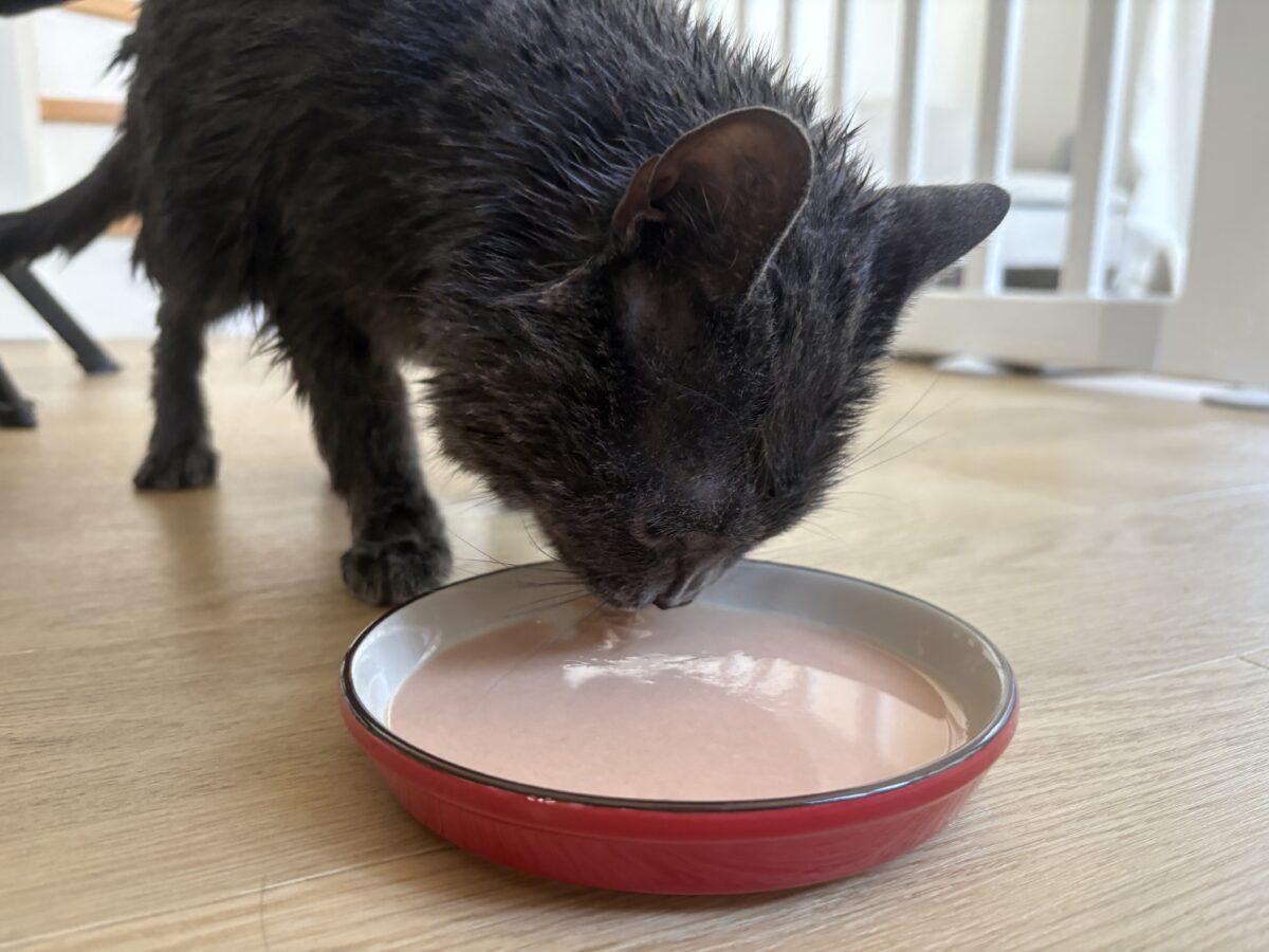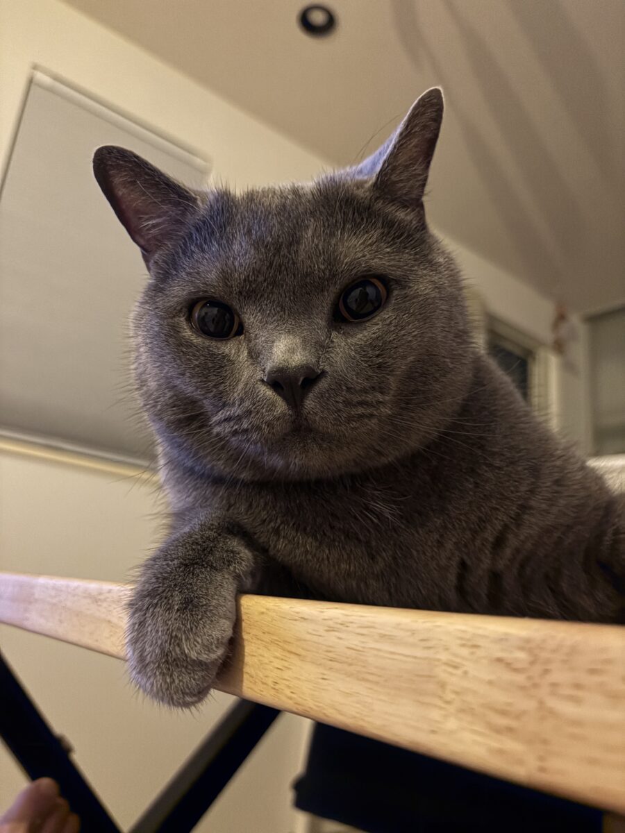 シャンプー後はブリティッシュショートヘアらしからぬ、すっきりとしたフォルムに返信。